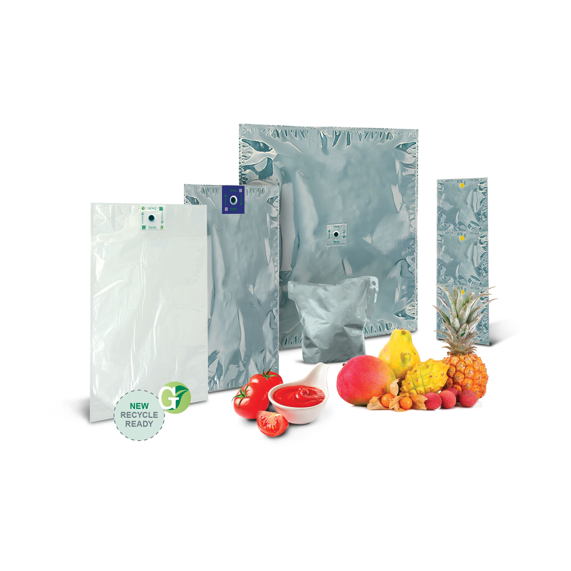 A complete line of aseptic bags, available in high barrier multilayer laminates and/or co-extruded films, with a capacity up to 1500 liters. They are suitable for aseptically processed products, which need to be filled, stored and distributed at room temperature without preservatives, maintaining organoleptic properties, taste and nutritional values unchanged for long periods of time. In this way no refrigeration is required with great energy savings.