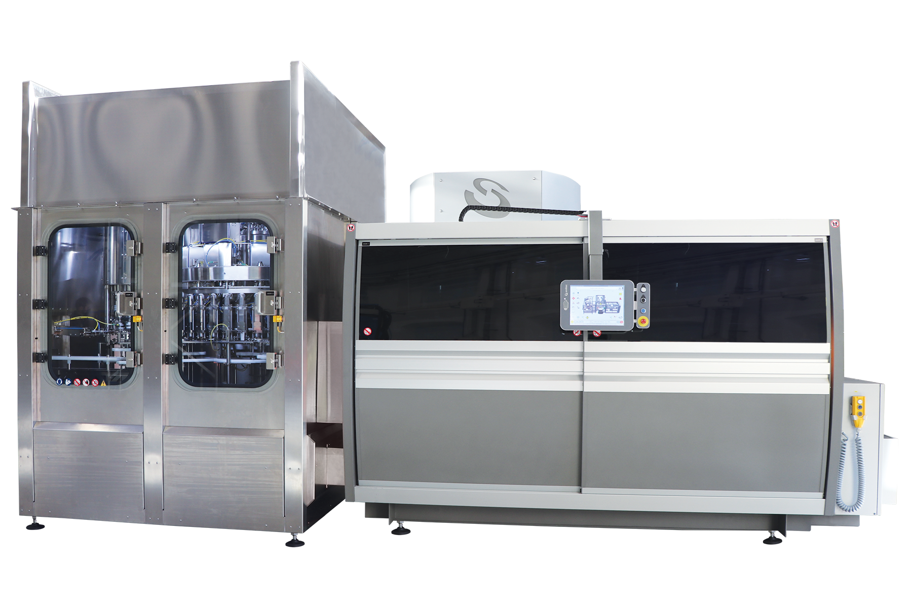 SMI compact systems from ECOBLOC® range integrate in a single block the functions of a rotary stretch-blow moulder, a rotary electronic filler and a rotary capper.