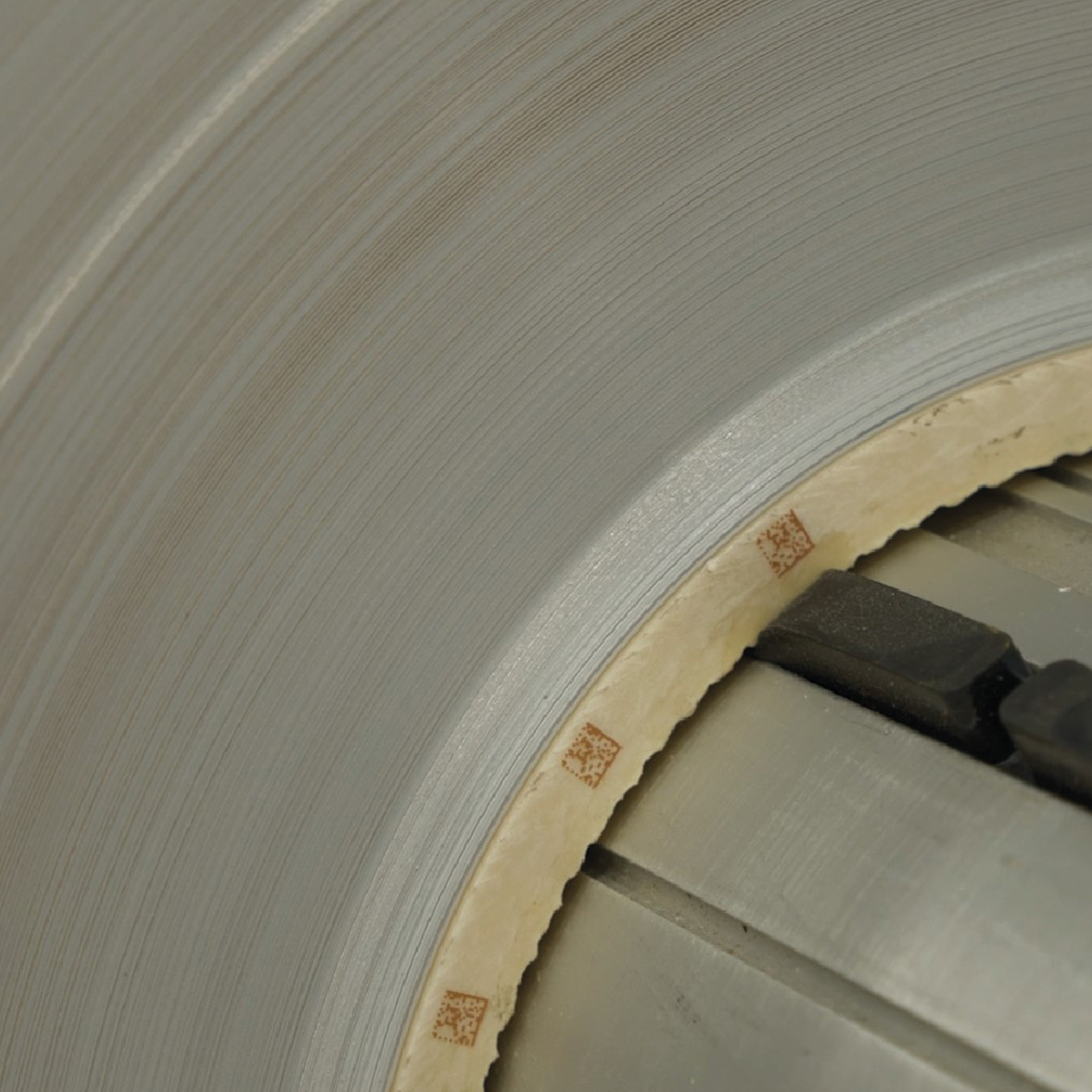 The heart of the innovation is in the engraving of a QR code on the core of the flexible laminate reel. This code, read from the packaging line: